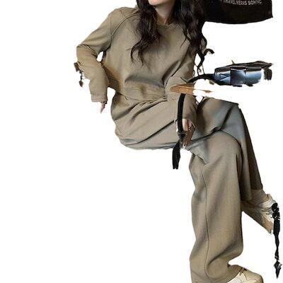 スポーツ ゆったり セットアップ 秋 カーキ スーツ 新作 スウェット 2点セット レディース 新作 人气