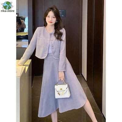 超人気セットアップ スーツ レディース きれいめ ツイードスカート ノーカラー ツイードジャケット 大きいサイズ 秋 冬 韓国 ファッション 卒業式 入学式