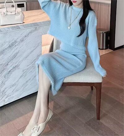 カシミヤタッチ 2024秋冬ニットロングワンピース セット二点セット気質 高級感 ワンピース 女 セットアップ