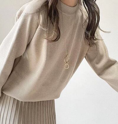 カシミヤタッチ セットアップ レディース 長袖 セーター プリーツスカート ニット スカートセット ギャザー 秋冬 二点セット 無地
