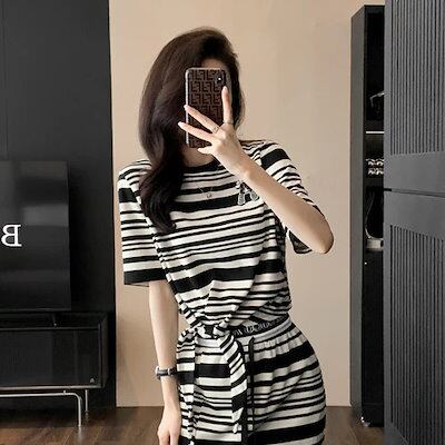 おしゃれ 二点セット 涼しく楽ちんセットアップ 着痩せ カジュアル 夏