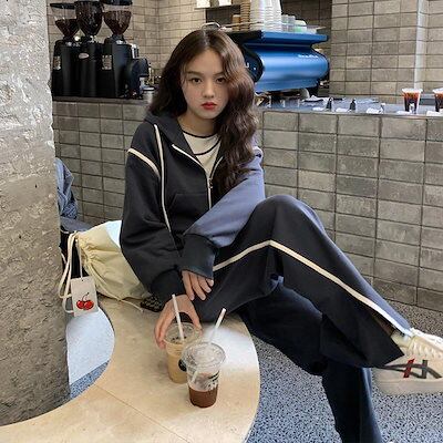 ジャケット スーツ 春と秋 フード付き セットアップ スポーツ レディース ワイドパンツ ツーピース スウェット 2024 ファッション