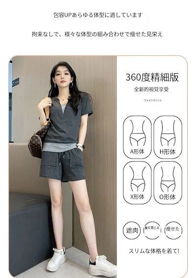 ゆったり 運動半袖 カジュアルショットパンツ セット 薄手 ルームウェア 2024夏 カジュアル 着痩せ 二点セット 韓国ファッション キャミソール ショットパンツ