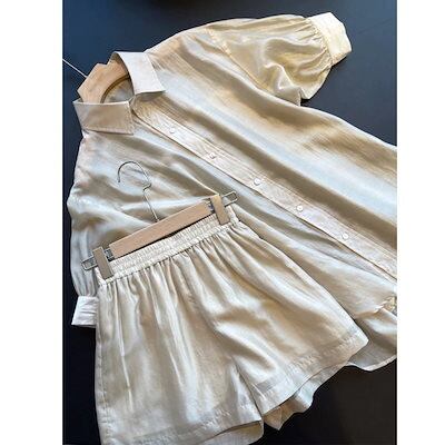 2024夏 薄手 真珠光沢のある素材 着痩せ セットアップ uvカット 夏服 二点セット ゆったり 日焼け防止 ショットパンツ キャミソール 韓国ファッション カジュアル ルームウェア レディース