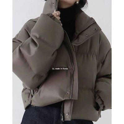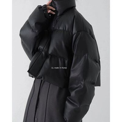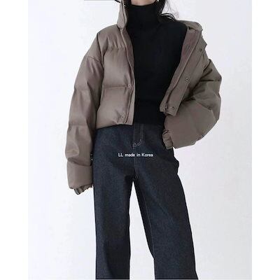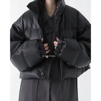 ゆるい 暖かい レディース PU 秋冬 春 カジュアル アウター 流行り 新作 ブラック トップス ショット丈 綿服 厚手