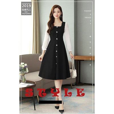 ワンピース レディース ワンピース 秋 きれいめ 膝丈ワンピース 長袖 スクエアネックワンピース aラインドレス 着痩せ 通勤 結婚式ドレス お出かけ
