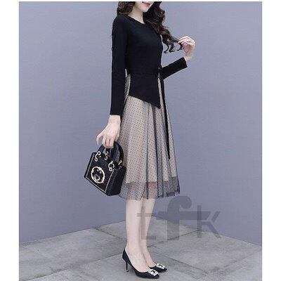 ワンピース ひざ丈ワンピース レディース Aライン ワンピ チュールスカート 長袖 膝丈 着痩せ 春秋 フォーマル 結婚式 コーデ 30代 40代 50代 通勤 OL