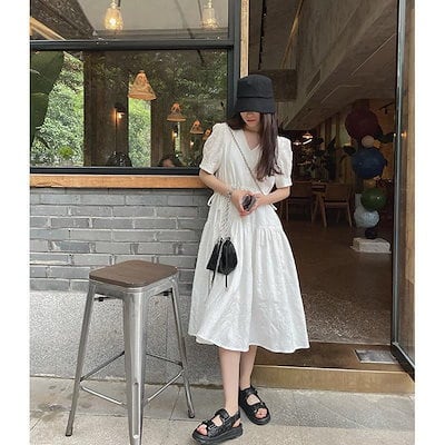 ワンピース レディース 40代 白ワンピース 膝丈 上品 着痩せ Aライン ワンピ 可愛い 夏