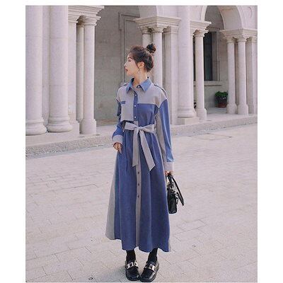 ワンピース レディース マキシワンピース ロング丈 Aライン シャツワンピース 秋 長袖 オシャレ 結婚式ドレス 大人可愛い