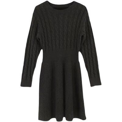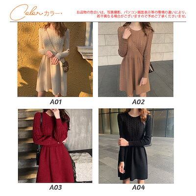 ニットワンピース レディース クルーネック フレア リブ 膝丈 ひざ丈 Aライン きれいめ 秋冬 長袖 ワンピース 体型カバー セーター おしゃれ