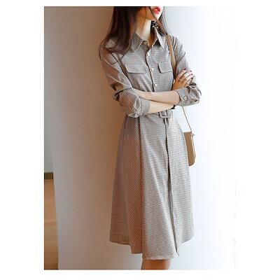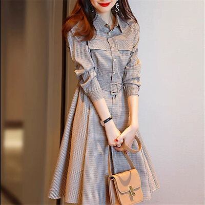 シャツワンピース レディース キレイめ ロング 可愛い 春秋 長袖 シャツワンピ Aライン チェック
