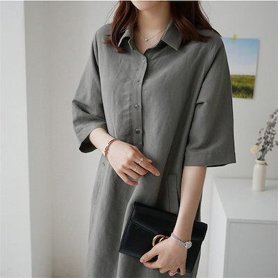 ワンピース シャツワンピース 重ね着 秋 レディース 綿麻 ミモレ丈 ゆったり 大きいサイズあり 無