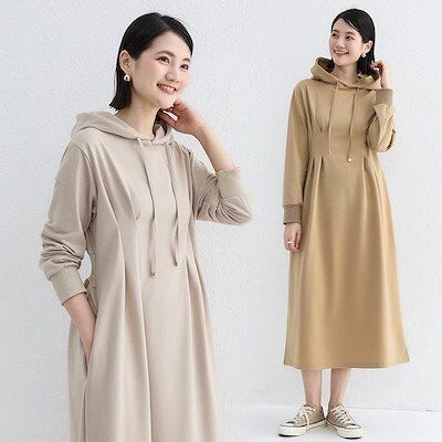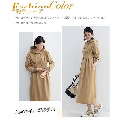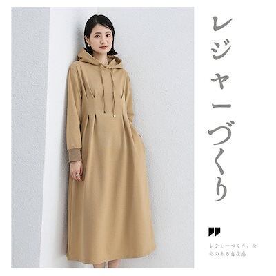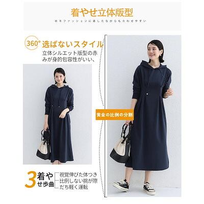 人気沸騰 新品 ワンピース Aライン パーカーワンピース レディース 秋春 長袖 暖かい あったか フーディー 着痩せ ロング丈 細身 綿混