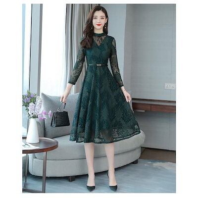 ワンピースドレス レディース 40代 キレイめ 春秋 長袖ワンピース レースドレス Aライン結婚式ドレス マキシ丈ワンピース オシャレ 上品 着痩せ 新作