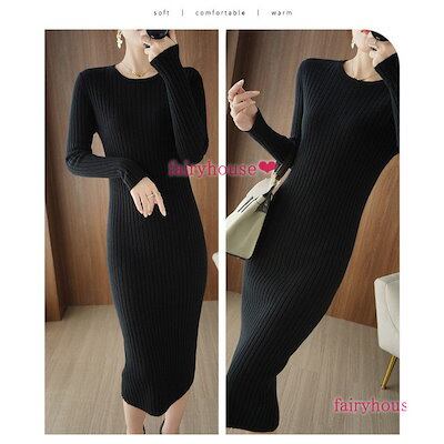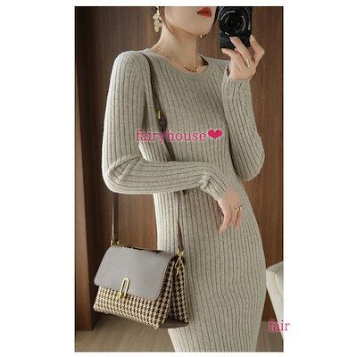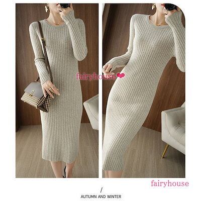 ニットワンピース レディース 秋冬 40代 長袖 ワンピース 膝丈タイトニットスカート Aライン 無地 ニットインナー ロング オシャレ韓国風 大人 通勤 30代 50代