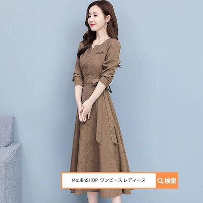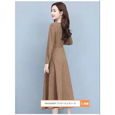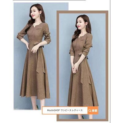 レディース レディース ロングワンピース 韓国 プリーツ ロング マキシ丈 ミモレ丈 きれいめ Aライン フレア 大人 上品 長袖 大きいサイズ カジュア