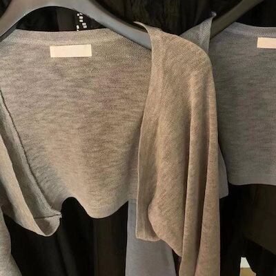 2024 夏 韓国 ショート丈 薄手 カーディガン トップス 長袖 紫外線対策 UVカット冷房羽織り加工 きれいめ ライトニット オフィス OLネックカジュアルフレンチフェミニンファッション韓国レディ