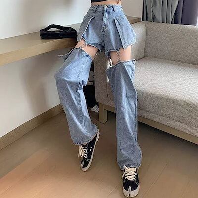 2024 春夏 韓国っぽ 最先端 デニムパンツ ワイドパンツ レディース ズボン ファッション ショートパンツ デザイン カジュアル 韓国系 メンズライク 美脚見え