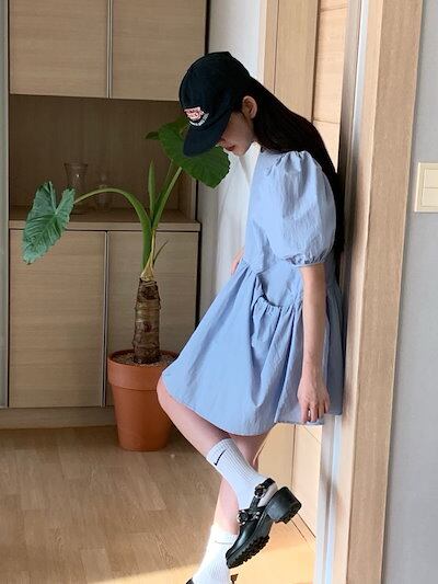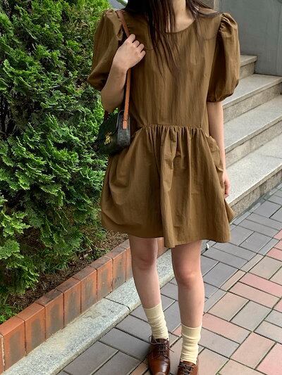 2024 春夏ワンピース シャツ ミニ丈 ラウンドネック 半袖 フレア Aライン 細見え 夏 白 茶色 青 カジュアル おしゃれ かわいい キュート 韓国ファッション レディース お出かけ