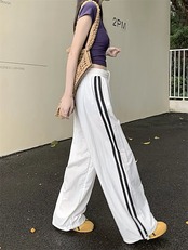 2024 春夏パンツ ロング丈 ワイド ストレート ストライプ ウエストゴム ハイウエスト 美脚効果 脚長効果 細見え 夏 白 黒 おしゃれ かわいい 韓国ファッション レディース お出かけ