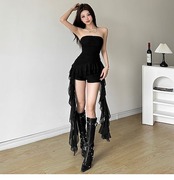 2024 春夏トップス 半袖 Tシャツ 韓国 レイヤード風 長袖 着痩せ スリム かわいい セクシー ラウンドネック おしゃれスリーブ カジュアルコーデ丈 ファッション系レディース お出かけ T