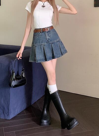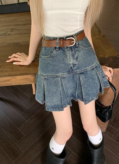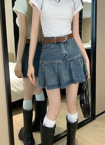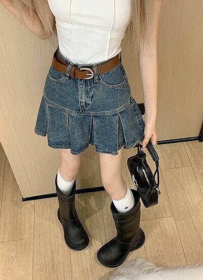 2024夏 韓国デニムスカート ショートスカート 膝丈 レディース シンプル 可愛い おしゃれ コーデ カジュアル 大人