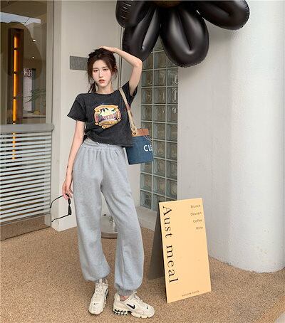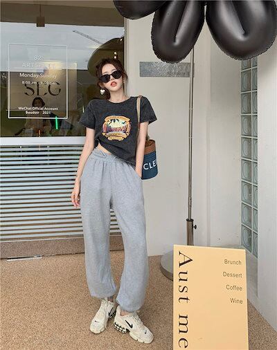 2024 夏 韓国 甘い トップス Tシャツ ラウンドネック 休日 ファッション スリムフィット加工風丈短め ショート カットソー レディース 韓国系 休日 おしゃれ T