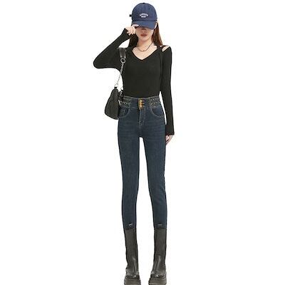 秋の新作 ストレッチスリムスリムスリム 脚見せジーンズレディースブルーグレー百合タイツ 脚長効果!スキニーデニムパンツ ダメージ ロングパンツ レディース ワイドパンツ