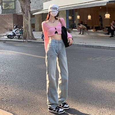デニムボトムス ジーンズ ワイドパンツ レディースストレート 着痩せ ジーンズ ロングパンツ レディース服 デザイン感 ハイウェストゆったり 長ズボン ロングズボン ワイドパンツ