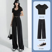 デニムボトムス ジーンズ ワイドパンツ レディース ブラック 夏 モップパンツ 着痩せ ジーンズ ロングパンツ レディース服 デザイン感 ハイウェストゆったり 長ズボン ロングズボン ワイドパンツ