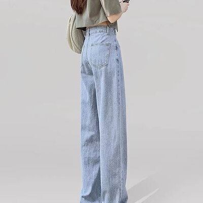 デニムパンツ ハイウエストワイド脚痩せ見えジーンズレディース夏2023新作ストレートゆったりドロップ感モップジーンズ