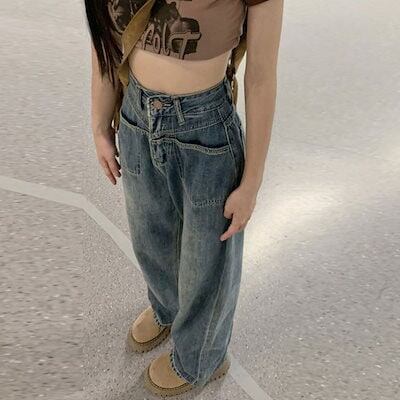 2025春夏 新作 おしゃれ ハイウエスト 着痩せ 気質 ゆったり レトロ デニムパンツ モップパンツ ワイドパンツ脚長効果!スキニーパンツ ワイドパンツ スラックスパンツ デニムパンツ
