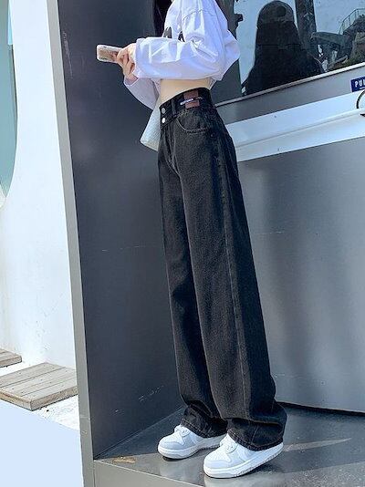 脚長効果!スキニーパンツ デニムボトムスレトロゆったりジーンズハイウエスト韓国ファッション秋 新作 スキニーパンツ レディース ワイドパンツ ボトムス