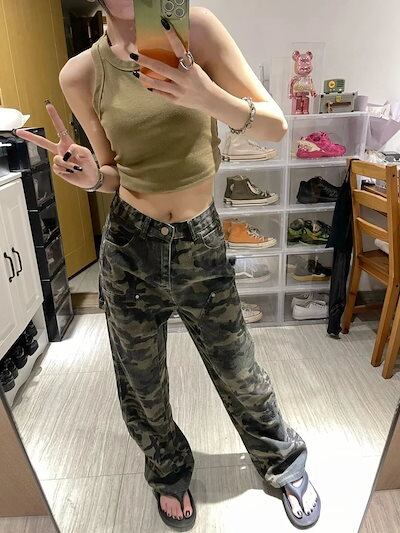ジーパン迷彩ジーンズ夏の王道新作ルーズ韓国版スキニータイダイストレートワイドパンツ デニムパンツ