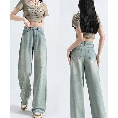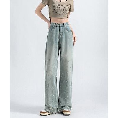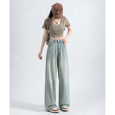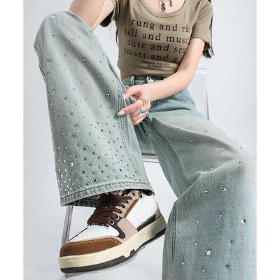 ジーンズ ラインストーン デニムパンツ レディース ワイドパンツ
