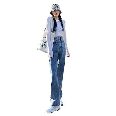 ワイドパンツ ハイウエストジーンズレディース2024秋新作ストレートパンツルーズトレーリングワイドパンツ