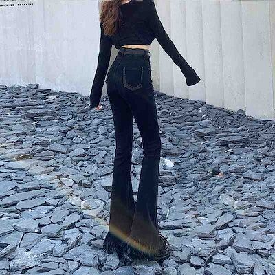 2024 新 ジーンズ レディーガウチョパンツ ジーパン ハイウエスト 着痩せ やせて見える 復古 ラッパズボン ワイドパンツ レディース
