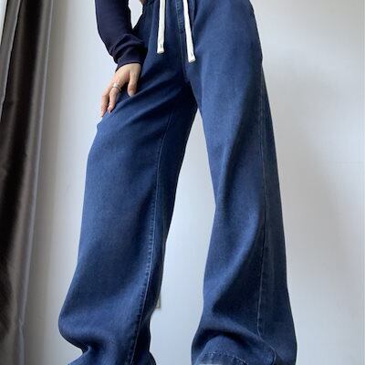 2024 新 ジーンズ レディーデニムパンツ 秋冬ドレープワイドカジュアルジーンズ