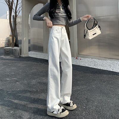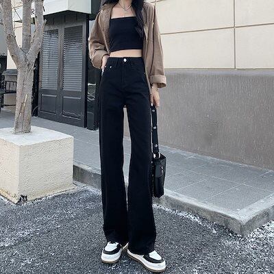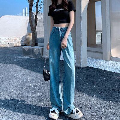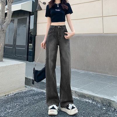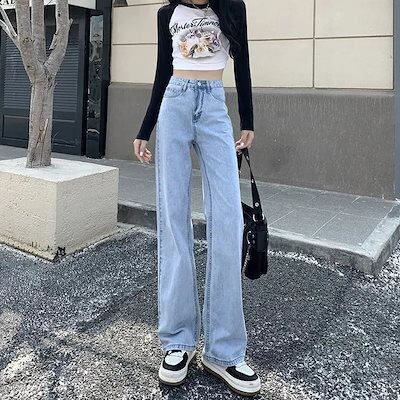 デニムボトムス 早いもの勝ち ジーパン ハイウエスト ストレートシリンダ ゆとりがある 着痩せ 垂下感 ズボン本 ワイドパンツ レディース 激?れ人気商品