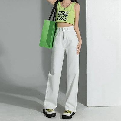 デニムボトムス 早いもの勝ち 垂下感 ジーパン ハイウエスト ゆとりがある ストレートシリンダ 着痩せ ワイドパンツ レディース 激?れ人気商品
