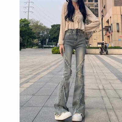 デニムボトムス 早いもの勝ち バリ ジーパン ハイウエスト 着痩せ やせて見える ラッパズボン ワイドパンツ レディース 激?れ人気商品