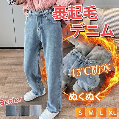 【3枚ご購入で200OFF】 -15℃防寒 極暖裏起毛 ワイドデニム ウエスト調節可能 裏起毛ロングパンツ 防寒 超暖 ゆったり 通勤 ぽかぽかパンツ ぬくぬくパンツ脚長効果抜群 レディース