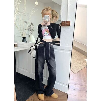 【3日以内出荷】脚長効果!デニムパンツ ワイドレッグジーンズ レディース 小さい 春秋新作 ハイウエスト デザインセンス 薄い 百掛け 床丈パンツ 韓国ファッション