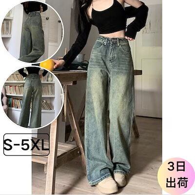 【3日以内出荷】スラックスパンツ アメリカン レトロ ビンテージ ジーンズ レディース 秋 ハイウエスト ワイドパンツ ストレートパンツ デニムパンツ 韓国