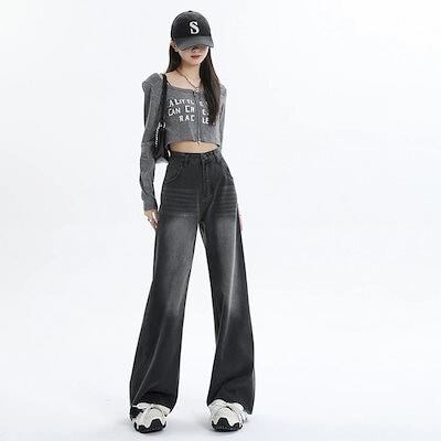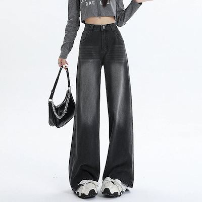 2025新作 スラックスパンツ アメリカン ハイウエスト デニムパンツ おしゃれ パンツ レディース ワイドレッグ 見えやせ ハイウエストでゆったり 垂れ感