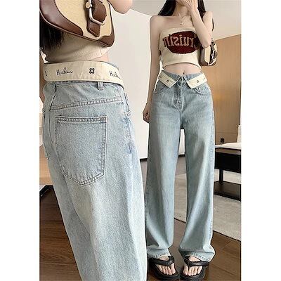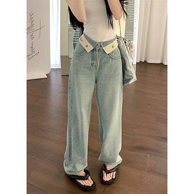 ワイドパンツ 2024春夏 新作 個性 ストレート ワイドパンツ ジーンズ ライトブルー 百掛け