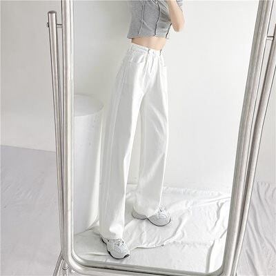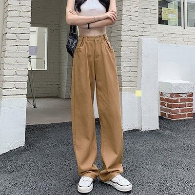 スラックスパンツ 秋 デニムパンツ レディース ハイウエスト ルーズ ワイドパンツ ストレート モッピングパンツ 韓国