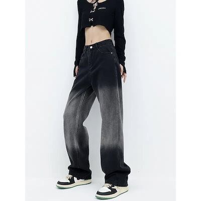スラックスパンツ 大きいサイズ グラデーション ストレート デニムパンツ ins レディース 秋 ハイウエスト スリム ワイドパンツ ズボン 韓国