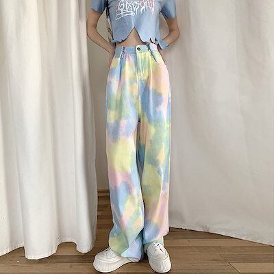 【3日以内出荷】スラックスパンツ 秋 デニムパンツ レディース ハイウエスト ルーズ ワイドパンツ ストレート モッピングパンツ 韓国