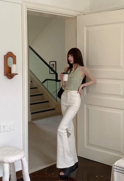 2024春夏パンツ デニム ジーンズ スキニー ワイドレッグ ハイウエスト 脚長効果 美脚効果 細見え ダメージ加工 春 白 水色 カジュアル おしゃれ かわいい 韓国ファッション レディース お出か